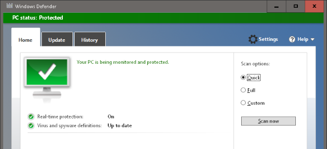 Installez-le et exécutez-le, puis choisissez entre l’option Rapide ou plein Scan pour numériser votre PC. Pour une protection à temps plein, cliquez sur l’onglet Paramètres et activez une option pour que Windows Defender s’exécute en arrière-plan. Une fois par mois, numérisez votre PC et cela permettra de garder votre ordinateur Windows sans virus et autres logiciels malveillants
