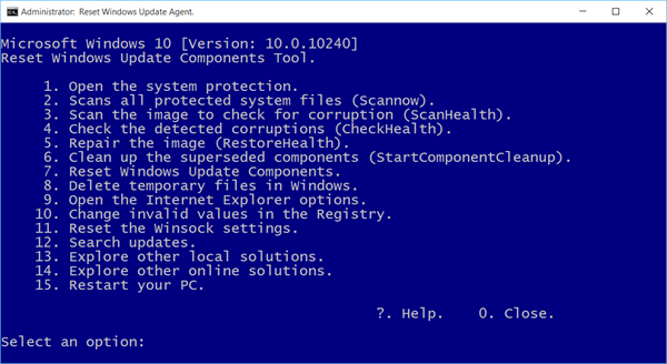 Il est recommandé d’exécuter l’outil de réinitialisation Windows Update Agent de Microsoft. Cet outil réinitialise et réparera l’intégralité des composants liés à Windows Update et des clés de registre, des corruptions, réinitialisera les paramètres Winsock et bien d’autres automatiquement.