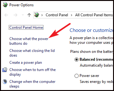 Sélectionnez «choisissez ce que le bouton d’alimentation fait»