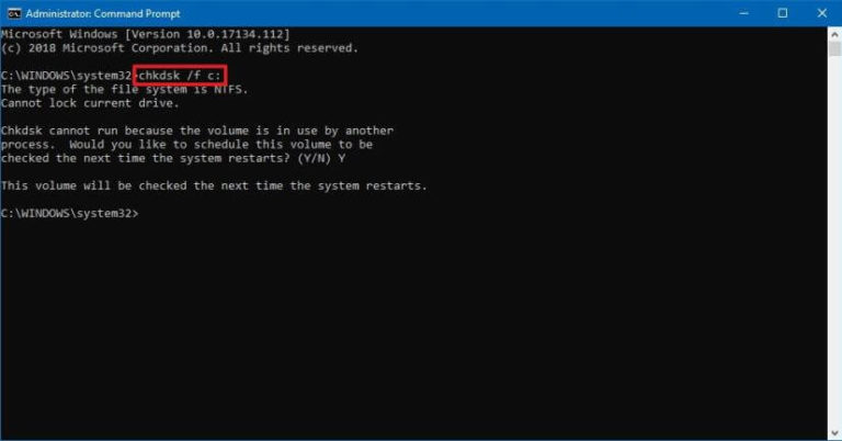 Tapez chkdsk C: / f / r / x dans la fenêtre d’invite.
