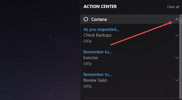• Après cela, cliquez sur le bouton X directement à droite de la notification