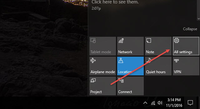 • Cliquez ensuite sur le bouton Tous les paramètres> dans le coin supérieur gauche de la fenêtre, sélectionnez Système.