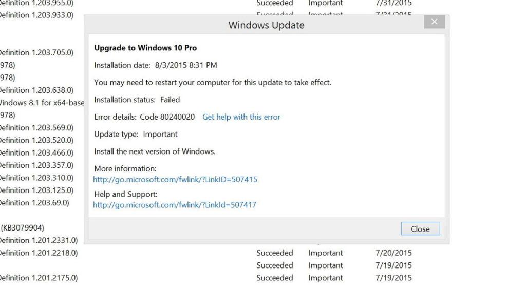 Comme mis à niveau a déployé de nombreux utilisateurs ont commencé à mettre à niveau les ordinateurs progressivement, mais beaucoup d’utilisateurs les ont trouvés arrêtés par erreur 80240020.