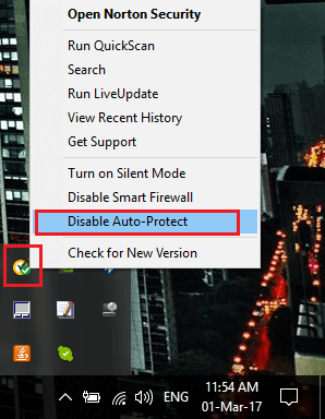 - Tout d’abord, cliquez avec le bouton droit sur le programme antivirus installé sur votre système> choisissez Désactiver.