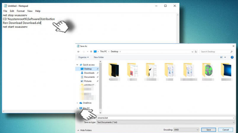 - Et nommez le fichier comme rename.bat> cliquez sur Entrée.